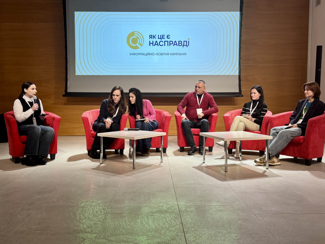 Відкривали і модерували захід Ірина Бреза, голова Ужгородського пресклубу та Анна Семенюк, координаторка проєкту «Інформаційно-освітня кампанія «Як це є насправді».
